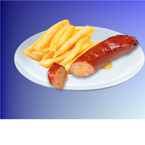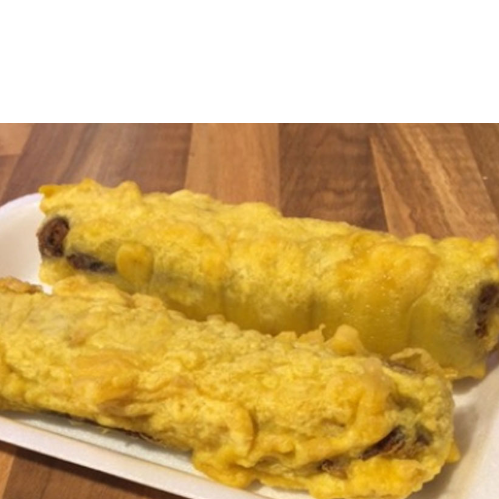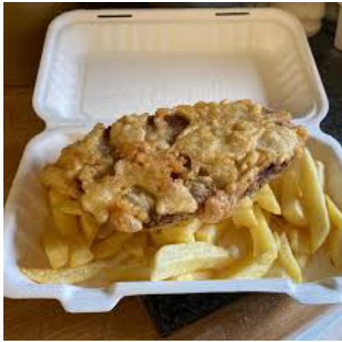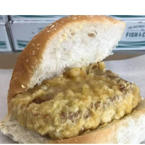 Battered or plain sausage, battered hamburger, 1/4 pizza crunch, 1/4 fried pizza, 5 chicken nuggets, 5 onion rings and chips.