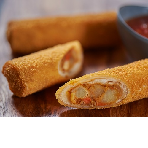 Veggie pakora with salad or swap for chips inside the wrap, chilli and garlic sauce