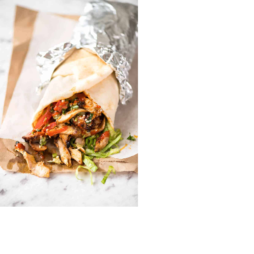 Chicken and doner kebab with salad or swap for chips inside the wrap, chilli and garlic sauce