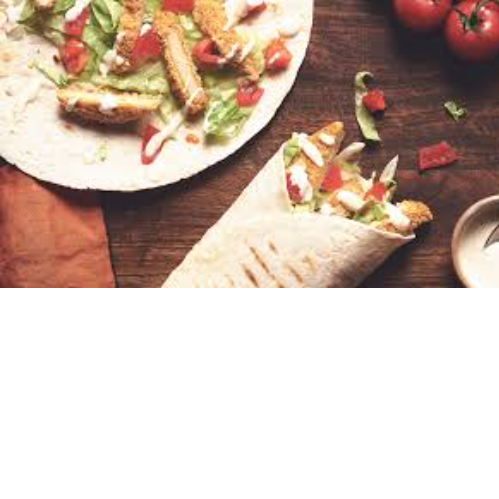 Southern Fried Chicken Strips with salad or swap for chips inside the wrap, chilli and garlic sauce