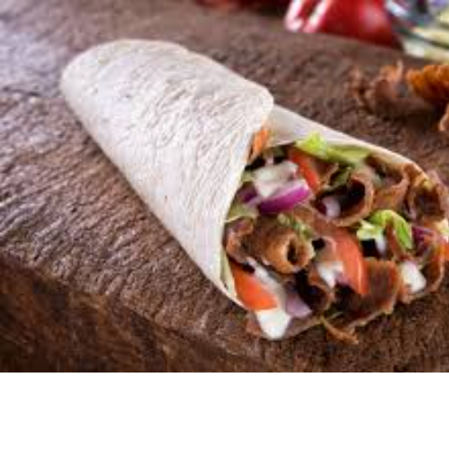 Doner meat with salad or swap for chips inside the wrap, chilli and garlic sauce