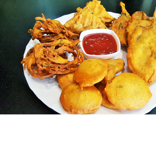 5 pcs Vegetable Pakora with salad or chips, chilli sauce and garlic mayo on side